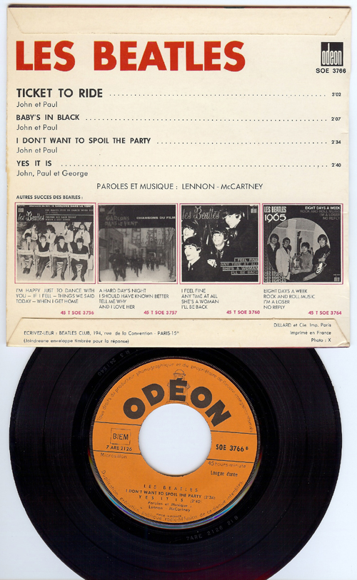 Ticket To Ride / Yes It Is | Odeon | O 28 523 | D / 65 | VG/VG | sold | ||