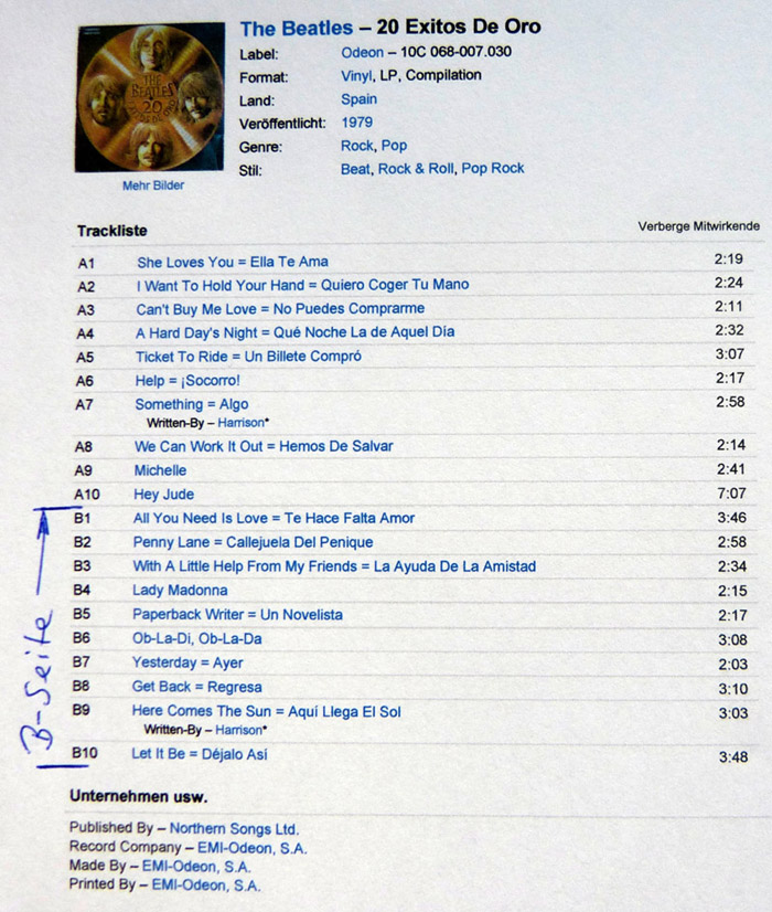 Beatles LP`s | Title | Label | LP-Nr. | Land/Year | Description |