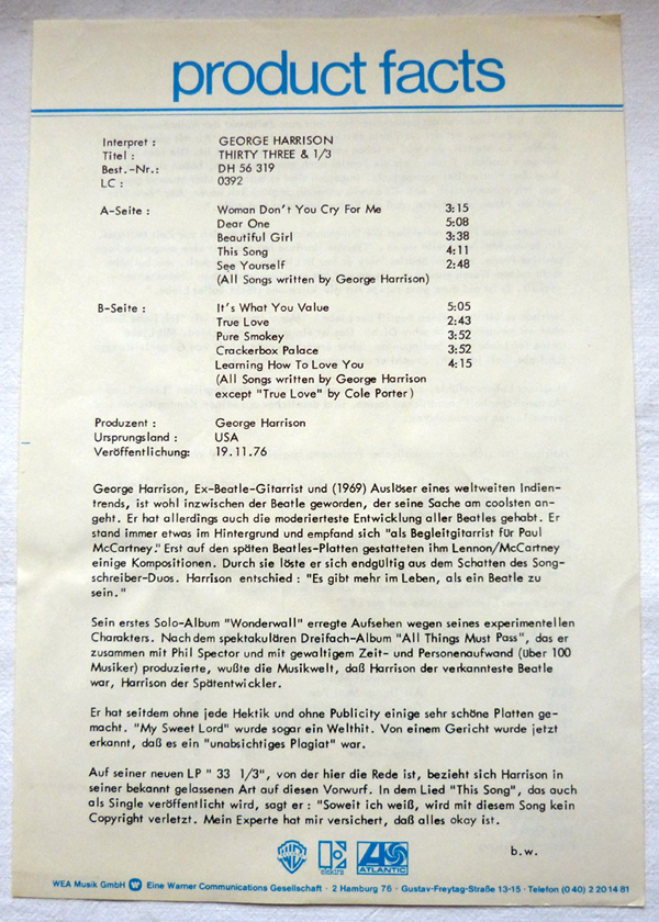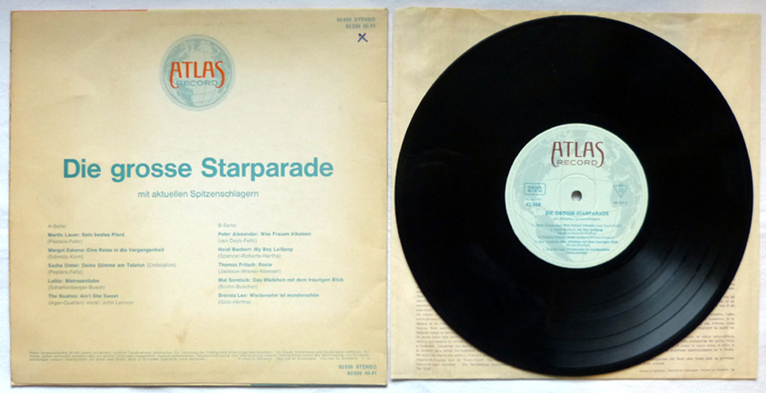 This freebie package was issued by the German pharmacutical company Stada in 1981. (Stada Arzneimittel AG.) The outer sleeve is a slipcase with an opening in the right hand side in which you slide the album into. Advertising LP "Cutistad" STADA Arzneimittel AG, 6368 Bad Vilbel 4 |